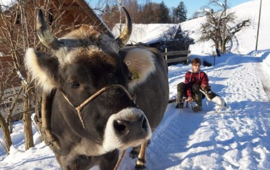 Aufstehen musste ich heute um sechs Uhr dreissig. Um sieben war Arbeitsbeginn und ich habe als Erstes das Frühstück auf den Tisch gestellt. Da die Kinder im Homeschooling sind, mussten sie nicht in die Schule geschickt werden. Somit konnte ich gleich darauf nach draussen, um die Kleintiere zu verpflegen. Kurze Zeit später ging ich wieder nach drinnen, um zu frühstücken. Vorher habe ich noch die Abwaschmaschine ausgeräumt. Um Viertel nach acht machten wir uns auf dem Weg zur Metzgerei. Dort packten wir dann das Fleisch eines Rindes ab, welches leider geschlachtet werden musste, da es nicht trächtig werden wollten. Von diesem Tier packten wir Hackfleisch, Ragout, Geschnetzeltes, Schulterbraten, Hackbraten und Fleischkäse ab. Wieder auf dem Betrieb machte ich Älplermagronen, dazu Wienerli und grüner Salat. Während des Abwaschs machte ich noch Vanillepudding, als die Küche dann sauber war, hatte ich eine Stunde Pause. Als die Stunde um war, ging es weiter mit dem Aufhängen der Glocken, die ich und Ueli vor ungefähr vierzehn Tagen abgehängt hatten. Ich habe sie in der letzten Woche gewaschen, poliert mit Polierpaste und den Lederriemen mit Leder Öl geschmiert. Danach ging es weiter mit abstauben und staubsaugen des mittleren Stockwerkes des Hauses, welcher ich jeden Donnerstag putzen muss. Nach dem gab es Zvieri und kurz darauf ging es auch schon in den Stall. Heute war ich mit Irene im Stall. Ich durfte die Kühe im Fressgitter einsperren, da Irene immer mal wieder wegmusste, um den Fleischkunden ihre Fleischbestellung zu überreichen. Danach mistete ich bei den Gustis und zu guter Letzt war noch der grosse Stall zum fertig machen. Zum Abendessen gab es die Vanillepuddings mit Brot, Käse und Konfitüre. Kurz nach dem Essen hatte ich Feierabend.