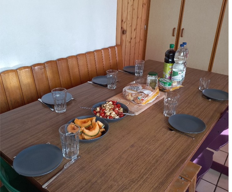 Mein Tag begann um 7.00Uhr. Als erstes habe ich Elina und Nevio das Znüni und etwas zu trinken eingepackt. Dann ging ich in die Waschküche um die restliche Wäsche hoch zu nehmen. Nachdem ich diese geholt habe ging ich schnell zu den Kaninchen und als ich zurück kam habe ich begonnen das Badezimmer zu putzen. Als ich fertig war hatte ich noch etwas Zeit die Wäsche zusammen zu legen und begann anschliessend das Mittagessen zu machen. Ich machte Reis im Steamer, «Brätkügelchen» an einer weissen Sauce & Salat. Das war sehr lecker! Nach dem die Küche gemacht war, hatte ich Pause. Weil morgen Enea Geburtstag hat haben Bianca und ich zwei Biskuitböden gebacken. Nachdem wir das gemacht haben, habe ich noch die restliche Wäsche zusammengelegt. Zum Abendessen gab es Resten und Melone, dass war ein einfaches ,,Znacht’’. Zum Schluss räumte ich noch die restlichen Kleider weg, schnitt die Spargeln und hatte dann Feierabend.