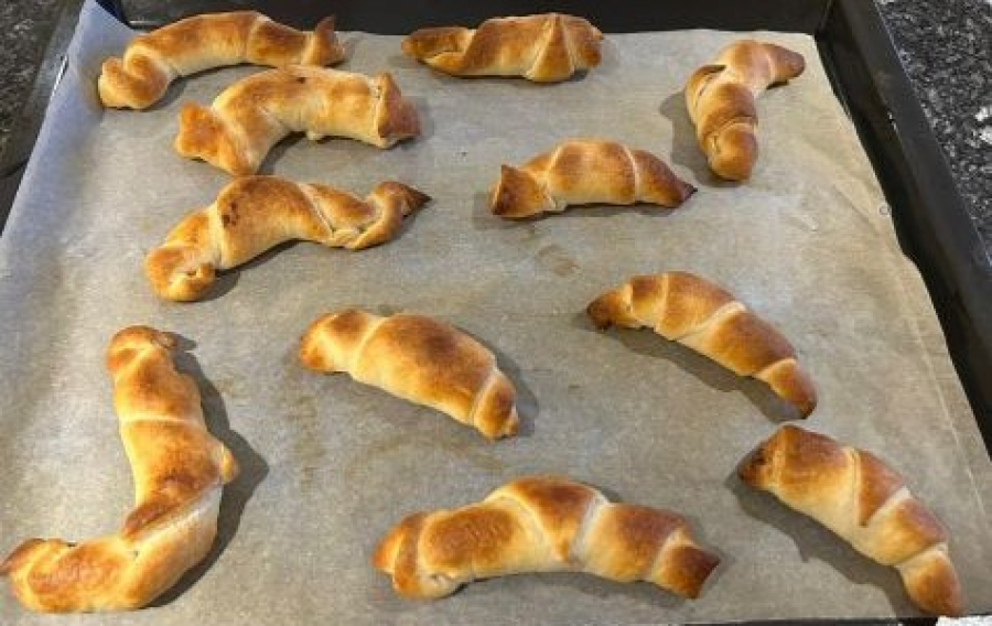 Meine Chefin hat mir kurz alles erklärt und dann habe ich angefangen Mandel Gipfel zu machen.